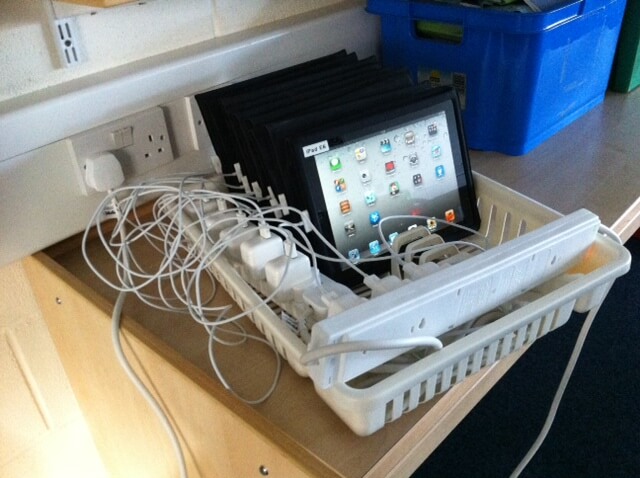 Heath Robinson solution to iPad storage & charging. Cost: £9.97[/caption]