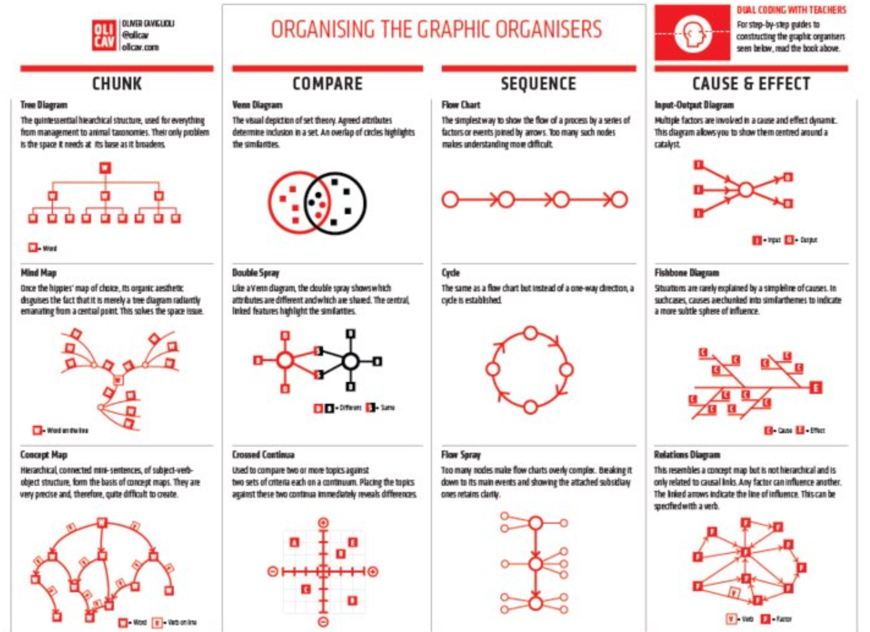 https://www.olicav.com/[/caption]While I can see the utility in most of the organisational methods above, many people (myself included) struggle with the trend for laying out fairly straightforward information in increasingly convoluted ways. Imagine reading a book where the writers presents all the text in these ways instead of using sentences and paragraphs? Speaking personally, I'd prefer text over a diagram in most instances.