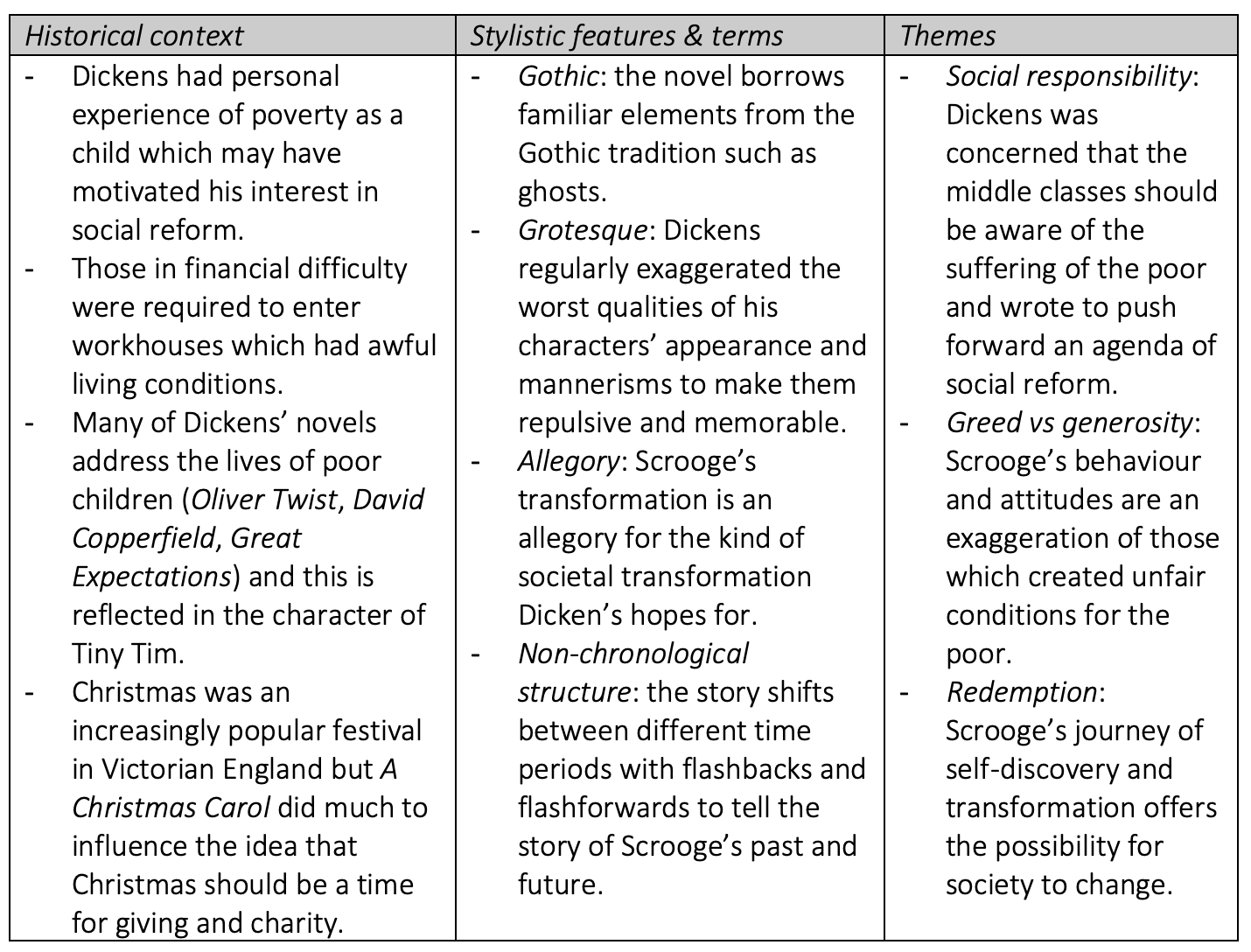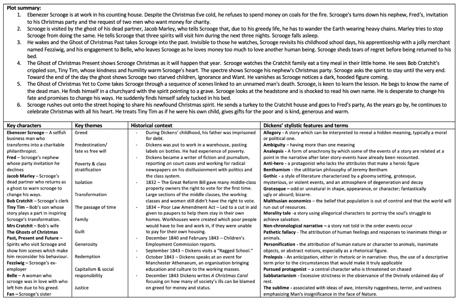 Lists of ‘essential’ context have been recently popularised as ‘knowledge organisers’. The idea is that everything that students ought to memorise about a text should be set out on a single sheet of A4 paper. There’s nothing wrong with the desire to organise the contextual knowledge you wish students to learn about a given text but my criticism of very many of the knowledge organisers I’ve encountered are that they suffer from being crammed with stuff that is unlikely to be particularly helpful. Take a look at this example of a knowledge organiser for Dickens’ A Christmas Carol:[1]In summary, a knowledge organiser is a tool. Just as guns don't kill people, neither are knowledge organisers flawed. If you don't like them or don't find them useful in your subject, don't use them. If you've been given a poorly designed knowledge organiser, make it better. A tool is only as useful as the use it's put to and KOs are put to great uses in many classrooms and schools.