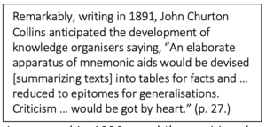 Like many others, I got quite excited about the idea of organising the knowledge students needed to learn on a single page when I first encountered it on Joe Krby's blog. As Joe said, a knowledge organiser (KO) can "specify subject knowledge in meticulous detail," provide "clarity for teachers" and provide a mechanism for "boosting students' memory". Used well, they can be part of a coherent five year revision strategy. I had a go at making some examples of KOs for English and started recommending the approach to schools I worked with.Then a thousand flowers bloomed; KOs popped up everywhere. With incredibly rapidity they went from grass roots enthusiasm to top down policy mandate. School began insisting every subject design KOs for every topic. With teachers not really understanding the purpose behind what they were doing, inevitably, many of these KOs were poorly conceived, badly implemented and incorrectly used. But does this mean that the attempt to organise and summarise the knowledge to be learned is a mistake? Certainly some seem to think so.